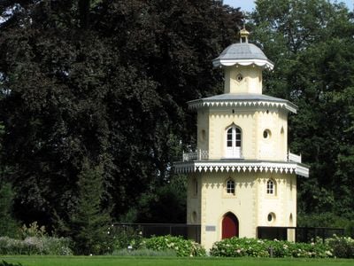 Het landschapspark, ontworpen door Jan David Zocher Jr, bevat slingerende paden, grachten en kenmerkt zich door een oosterse duiventoren tussen de tuinornamenten.