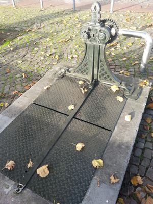 Spuisluis van het type duikersluis, Rijksmonument op Rijnkade tegenover 143