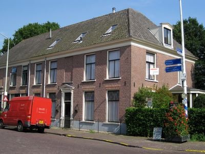 Laag langgerekt hoekpand onder zadeldak, in topgevels eindigend