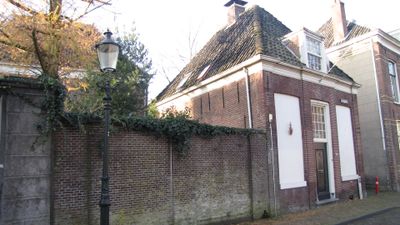 Woonhuis met lage gevel uitgevoerd in baksteen. Maakt deel uit van het synagoge-complex