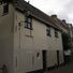 Witgepleisterde eenvoudige woning met rechte kroonlijst en zadeldak, deels uit 16e en 17e eeuw