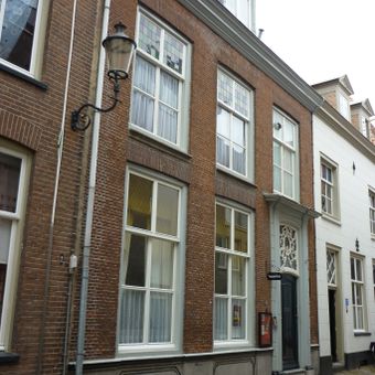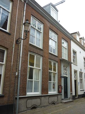 Pand met eenvoudige strakke lijstgevel. Consistoriekamer van de St. Joriskerk