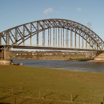 De Spoorbrug Arnhem verbindt Renkum met Arnhem via een stalen vakwerkconstructie met een hoofdoverspanning van 132 meter.