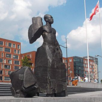 Monument voor Anton de Kom, Bronzen oorlogsmonument in Amsterdam Zuidoost, Nederland.