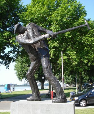 Scheepsbouwer, standbeeld door Ineke van Dijk in Schiedam, Nederland