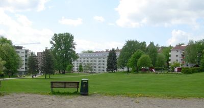 Het Iladalen Park strekt zich uit over 27.9 acres grond met wandelpaden, open ruimtes en recreatiegebieden in functionalistische vormgeving.