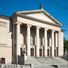 Het Groot Theater toont neoklassieke architectuur met een symmetrische gevel, grote zuilen en sierlijke interieurversieringen over meerdere verdiepingen.