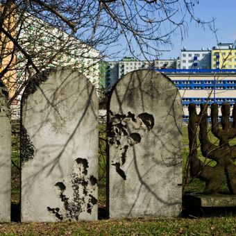 De begraafplaats omvat delen van oudere begraafplaatsen, met grafstenen die Hebreeuwse en Poolse inscripties en reliëfdecoraties vanaf 1860 vertonen.