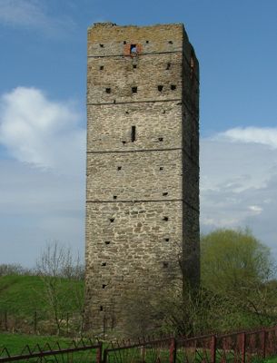 Ruiny wieży obronnej, wraz ze wzgórzem, na którym jest usytuowana
