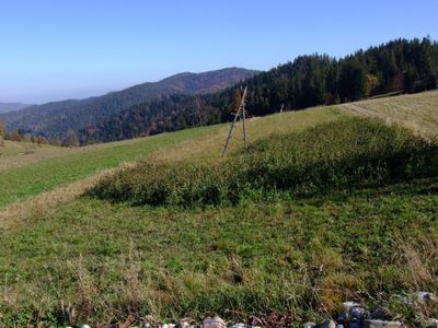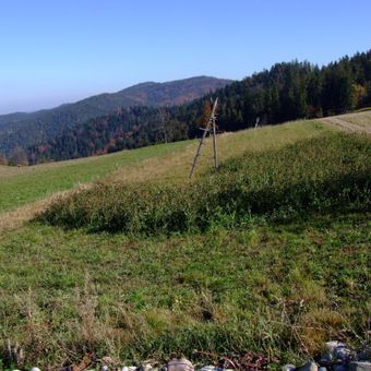 De top markeert de grens tussen de plaatsen Grywałd en Tylmanowa, met Stara Polana aan de westzijde met sporen van landbouwactiviteiten tot 1980.