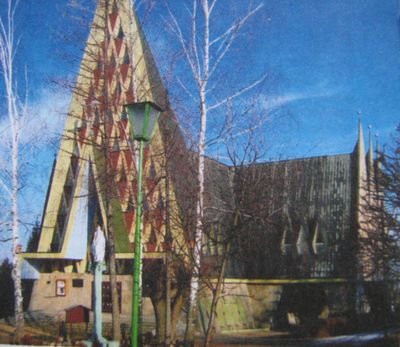 De kerk werd gebouwd in de tweede helft van de twintigste eeuw en markeert een breuk met traditionele katholieke bouwstijlen. Ze ontstond in een tijd toen moderne materialen zoals beton fundamenteel veranderde hoe kerken in Polen werden gebouwd.