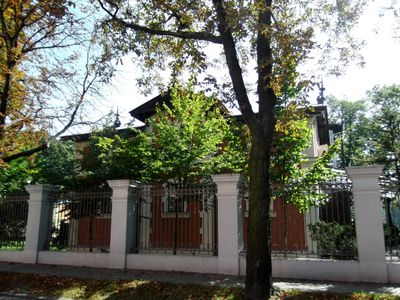 Carriage house and stable in Edward Herbst's palace, Pools monument in Łódź