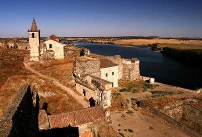Castelo de Juromenha is een middeleeuws fort aan de Guadiana-rivier, die de grens met Spanje vormt. De structuur heeft dikke verdedigingsmuren, zestien vierkante torens en een hoge donjon die boven het landschap uittorent.