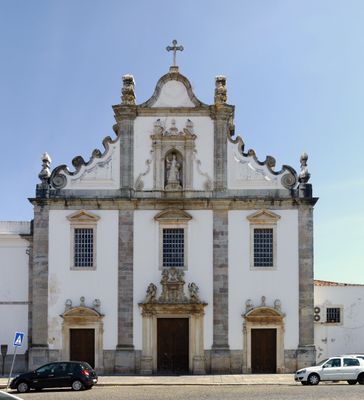 Igreja de São Domingos in Elvas is een gotische kerk met drie aparte portalen op de voorgevel, waarbij de centrale ingang versierd is met wapenschilden van de Dominicaanse Orde en koninklijke emblemen. Het gebouw toont karakteristieke gotische architectuurkenmerken in de structuur.