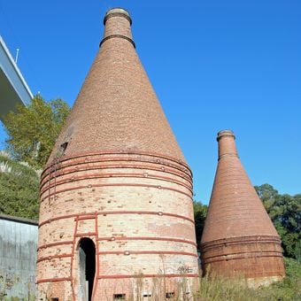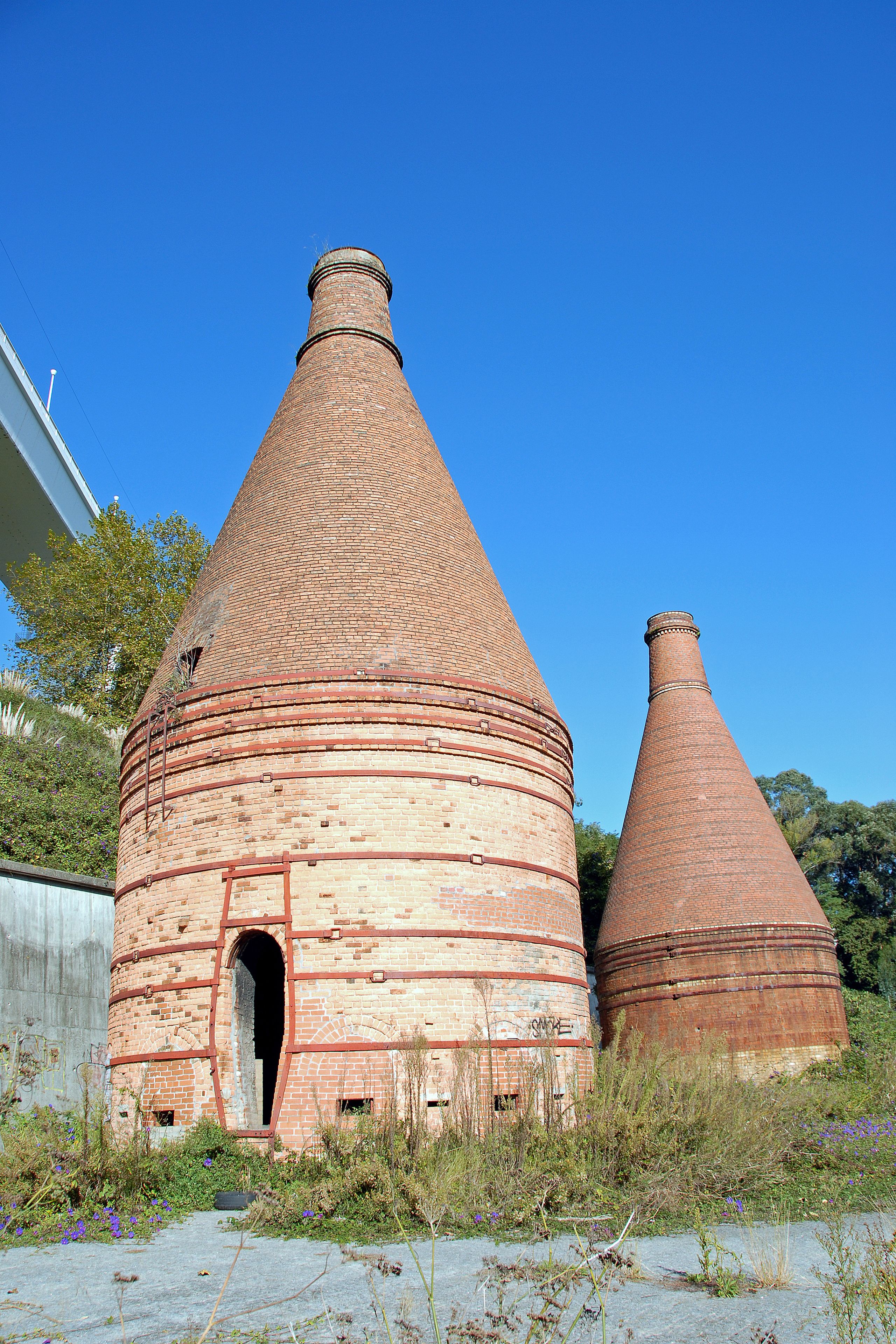 Twee bewaarde ovens en een schoorsteen staan als overblijfselen van de voormalige Massarelos aardewerk fabriek langs de Douro rivier.