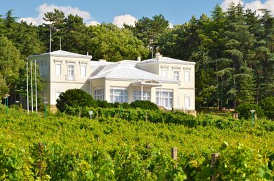 De neoclassicistische villa staat op de noordelijke hellingen van de Plavinac-heuvel, met uitzicht over de Donau en de wijngaarden die zich over het landgoed uitstrekken.
