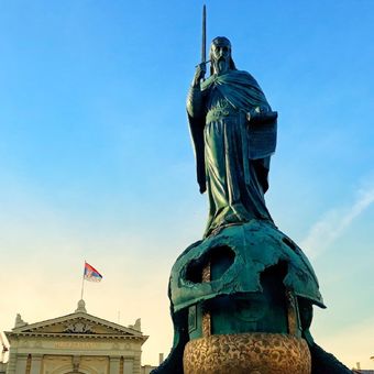De Russische beeldhouwer Alexander Rukavishnikov creëerde dit monument ter ere van Stefan Nemanja, stichter van middeleeuws Servië, ingehuldigd in januari 2021.