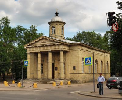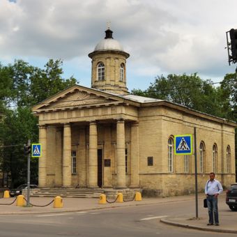 Architect Aleksey Baykov ontwierp en bouwde deze Lutherse kerk tussen 1825 en 1828, met toepassing van de klassieke architecturale principes.