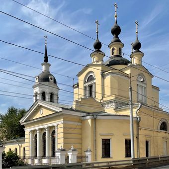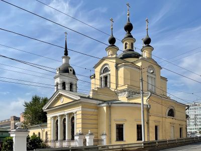 Joseph Bové, die bijdroeg aan de wederopbouw van Moskou na de brand van 1812, verwerkte neoklassieke elementen in het kerkontwerp.