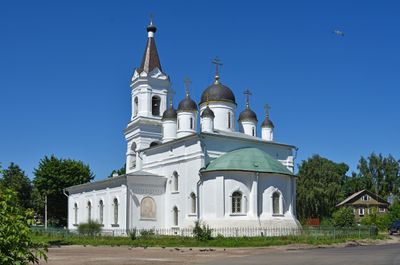 De Witte Drieënnigheidskerke is een stenen Orthodox kerkgebouw in Tver met een centrale koepel en traditionele orthodoxe architectuurelementen. Het gebouw toont massieve stenen muren en een ruimtelijke indeling die typisch is voor religieuze gebouwen uit die tijd.