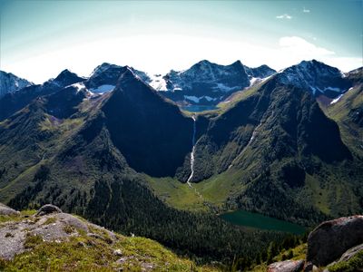 De Kinzelyuk-waterval is een cascadesysteem in het Oostelijk Sajangebergte waar water van het ene alpiene meer naar het andere stort. Het water daalt af langs een reeks rotsachtige niveaus, wat meerdere stromen creëert die in trappen naar beneden vloeien.