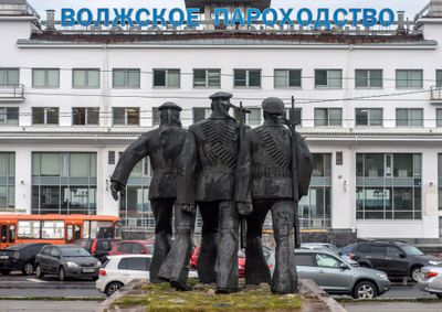Geplaatst in 1967 voor de verjaardag van de Oktoberrevolutie, eert dit monument de militaire flottielje van de Wolga die in 1918 uit burgerschepen werd gevormd.