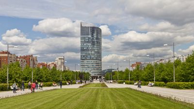 Drie vlaggenmasten van 175 meter hoog vormen de hoogste vlaginstallaties van Europa en de op een na hoogste ter wereld.