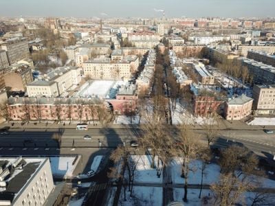 De Traktornaya Straat strekt zich uit over 327 meter door Sint-Petersburg met woongebouwen die geometrische ontwerpen en halve bogen vertonen.