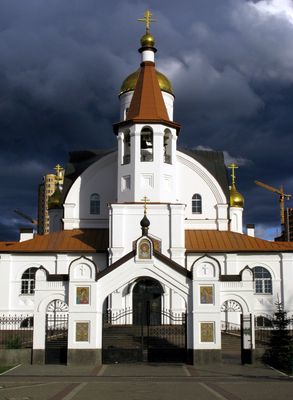 De Kerk van Onze-Lieve-Vrouwe van Kazan is een Russisch-orthodoxe eredienstruimte met meerdere vergulde koepels en ingewikkelde architectonische details in Russische Renaissance-stijl. Het gebouw vertoont karakteristieke kenmerken zoals versierde gevels en traditionele vormen die typisch zijn voor religieuze gebouwen in deze regio.