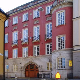Het Banérska palatset staat aan Västra Trädgårdsgatan 11A, met een vier verdiepingen tellende stenen structuur met ornamentele reliëfs nabij Kungsträdgården.