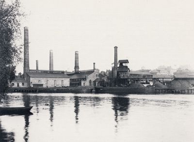 De strategische ligging aan het Klara-meer vergemakkelijkte het transport van steenkool via waterwegen voor de gasproductie.