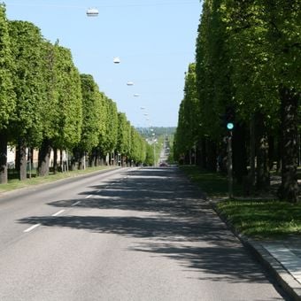 De bomenlaan strekt zich uit door Norrköping met ongeveer 1.800 lindebomen variërend in leeftijd van 25 tot 160 jaar langs het pad.