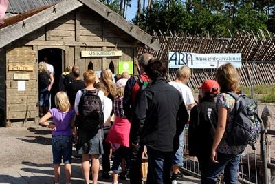 Het middeleeuwse entertainmentcomplex strekt zich uit over een groot gebied nabij het Vänernmeer, met constructies uit middeleeuwse filmproducties.