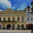 Het stadhuis van Košice vertoont barokke architectonische details met een opvallende toren, stucwerkdecoraties en fresco's op de gevel.