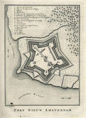 Fort Nieuw-Amsterdam bevat vijf bastions, twee kruithuizen en meerdere gevangeniscellen verspreid over het defensieve complex aan de rivieroever.