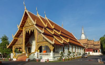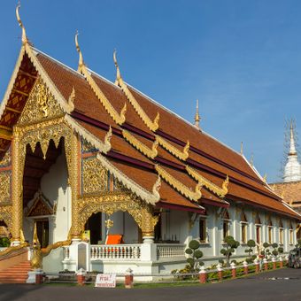 Wat Phra Singh beschikt over een hoofdzaal met Noord-Thaise architectuur, verrijkt met vergulde panelen en complexe houtsnijwerken op de buitenmuren.