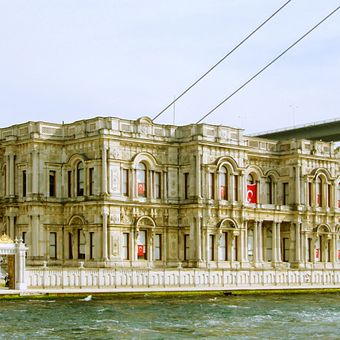 Het Beylerbeyi-paleis is een witte marmeren structuur aan de Aziatische oever van de Bosporus in Istanbul, met 24 kamers en 6 zalen. De binnenkamers zijn versierd met Franse klokken, Boheemse kristallen kroonluchters en porseleinkazen.