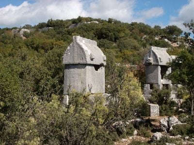 De graven dragen inscripties in Lycisch en Grieks, wat laat zien hoe verschillende groepen hier samenlefden. Je kunt zien hoe elke gemeenschap haar eigen begraafpraktijken in dezelfde plaats handhaafde.