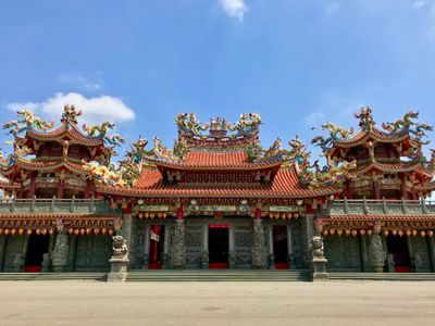 De Leshan Tempel vertoont traditionele Taiwanese architecturale elementen met gedetailleerd houtsnijwerk en verschillende hallen voor aanbidding en meditatie.