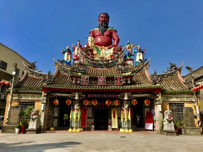 De Zhunan Wugu Temple is een Chinese tempel in Zhunan met traditionele Taiwanese architectuur gekenmerkt door ingewikkelde snijwerk op pilaren, balken en decoratieve elementen in de hele structuur. De indeling omvat meerdere binnenplaatsen, dakgedeelten met opgerolde dakranden en altaargebieden die de religieuze praktijken van de regio weerspiegelen.