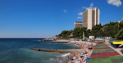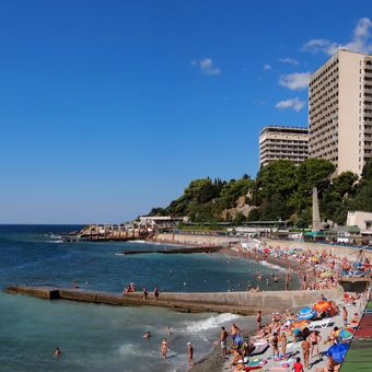 Gelegen ten zuidwesten van Jalta op 120 meter boven zeeniveau, strekt Koreiz zich uit langs de Zwarte Zeekust met bergen op de achtergrond.