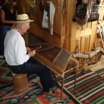 Het museum toont traditionele Hutsul houten instrumenten, waaronder rechthoekige en holle violen, die specifieke regionale technieken van instrumentenbouw vertegenwoordigen.