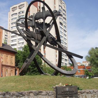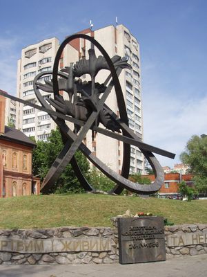Пам'ятний знак жертвам Чорнобильської катастрофи, Kernramp gedenkteken in Sviatoshynskyi district, Kiev, Oekraïne