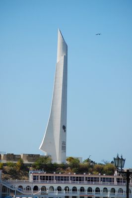De Obelisk Hero City Sevastopol is een 60 meter hoog monument dat een verticale bajonetschacht combineert met een gebogen zeilvorm, zichtbaar van veel punten rond de stad. De twee ontwerpelementen creëren een sterke verticale aanwezigheid die opvalt tegen de haven en omliggende kustlijn.