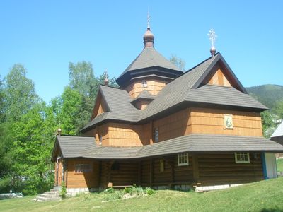 De positie van de kerk in de Karpaten op coördinaten 48.175278, 24.896667 creëert een natuurlijke integratie tussen religieuze architectuur en berglandschap.