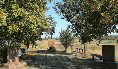 Het Menora-monument is een architectonische structuur in Mariupol met een centrale menora met een Davidsterrenbasis. Verschillende herdenkingsstelen met inscripties omringen het hoofdfiguur en markeren de locatie als een plaats van herdenking.