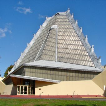 Wright ontwierp de synagoge om de berg Sinaï te symboliseren, waarbij de piramidevorm de goddelijke openbaring herinnert. Een bronzen zevenarmige menora bekroont de top van het gebouw en is van een afstand te zien.