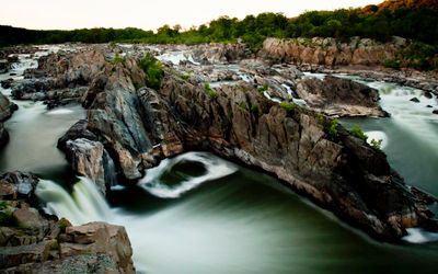Great Falls Park is een natuurreservaat in Fairfax County met ongeveer 800 acres waar de Potomac River door steile rotsformaties stroomt. De rivier creëert natuurlijke watervallen en snijdt door de Mather Gorge, een diepe kloof gevormd door blootgestelde rotslagen.