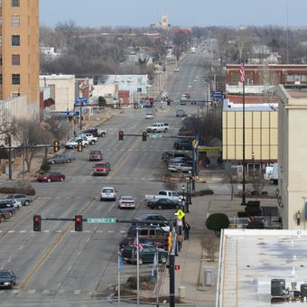De stad ligt ongeveer anderhalf uur rijden ten noorden van Oklahoma City langs de hoofdweg door de regio. Bezoekers vinden de meeste voorzieningen geconcentreerd langs de doorgaande weg, terwijl woonstraten zich in alle richtingen uitspreiden.
