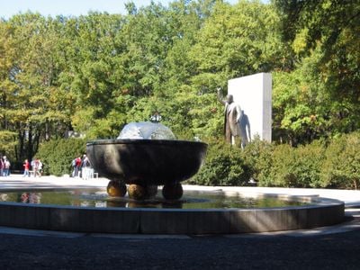 Een 5 meter hoog bronzen standbeeld van Theodore Roosevelt staat op het herdenkingsplein, omringd door platen met zijn natuurbehoudfilosofieën.